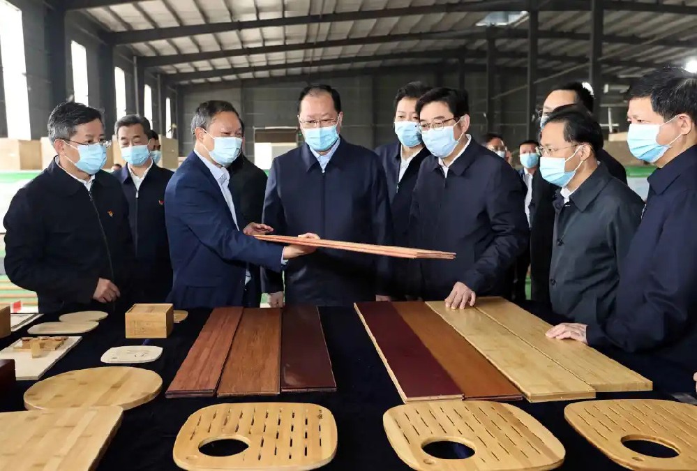 2025年6月16日,省政協(xié)副主席虢正貴來湖南桃花江竹材科技股份有限公司調(diào)研生態(tài)資源轉(zhuǎn)化與特色產(chǎn)業(yè)融合發(fā)展。公司董事長、省人大代表薛志成陪同并介紹情況。虢正貴充分肯定了桃花江竹材在竹資源利用及竹特色產(chǎn)業(yè)融合發(fā)展所取得的成果,他鼓勵企業(yè)繼續(xù)發(fā)揮龍頭優(yōu)勢,充分利用好桃江資源稟賦和產(chǎn)業(yè)優(yōu)勢,深化產(chǎn)學(xué)研融合,提升竹產(chǎn)業(yè)附加值,為民族地區(qū)生態(tài)資源高效轉(zhuǎn)化和特色產(chǎn)業(yè)融合發(fā)展探索更多經(jīng)驗。
